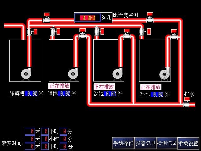 系統(tǒng)配置了比活度監(jiān)測(cè)系統(tǒng),則系統(tǒng)會(huì)自動(dòng)顯示即將排放的衰變池廢液比活度數(shù)據(jù),單位為Bq/L。
